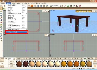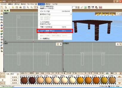 ここでは [ 床・天井 ] で天板を、[ 直方体 ] で脚を作成して、色パレットから色をつけています。