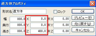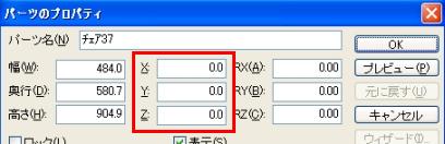 ■詳細パーツや形状をダブルクリックすると[プロパティ]ウィンドウが表示され、[X]/[Y]/[Z]には座標(配置位置)が表示されます。それぞれの座標の基準になっているのは、パーツを選択したときに表示されるピンクのポイントです。これを「配置基準点」といいます。 ●パーツの場合