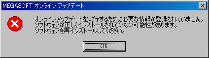 オンラインアップデートを実行すると、「オンラインアップデートを実行するために必要な情報が登録されていません」 と表示される |