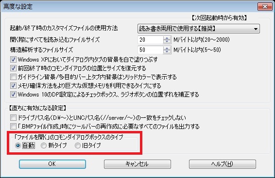 「高度な設定」ダイアログボックスの「「ファイルを開く」のコモンダイアログボックスのタイプ」で設定してください。