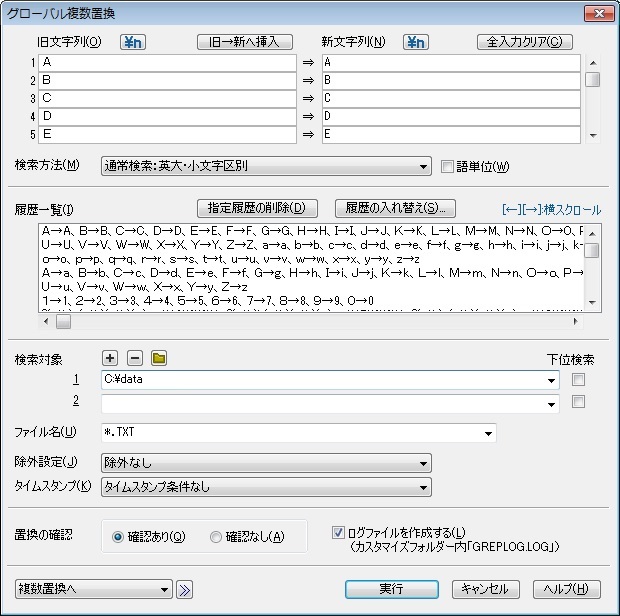 最大20組までの旧・新文字列を指定して、複数ファイルに対して一括置換ができます。