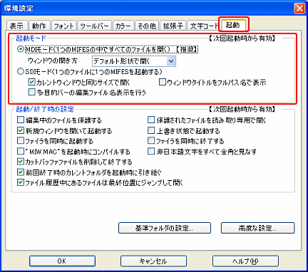 MIFESを起動して、【設定】−【環境設定】-【起動】タブで起動モードを選択し、【環境設定】を[OK]ボタンで閉じてMIFESを一度終了してください。