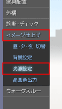 光源の点灯の切り替えは、ナビの[イメージ仕上げ]−[光源設定]からおこないます。