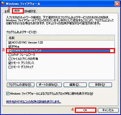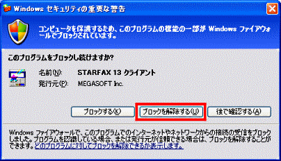STARFAX13を起動する際に、「Windowsセキュリティの重要な警告」画面が表示されますので、[ブロックを解除する]をクリックして、Windowsのファイアウォールで通信を妨げられないように設定します。![]() もし、[ブロックする]を選んでしまった場合は、次の操作でブロックを解除してください。