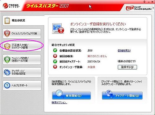 | 2. | [不正侵入管理/ネットワーク管理]をクリックします。