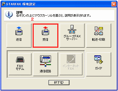Windowsのスタートから[すべてのプログラム]−[STARFAX13]−[その他の機能]−[環境設定]をクリックします。 |