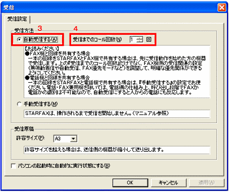 パソコンの電源が入っている時はSTARFAXで受信し、電源を切った時は併存のFAX機で受信したい |