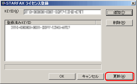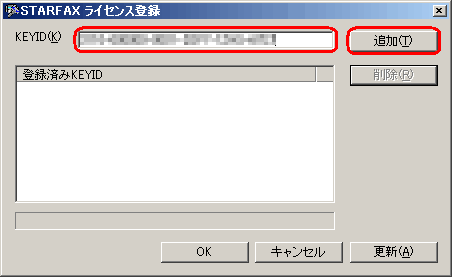 メールにて、お送りしたライセンスキーを入力し[追加]ボタンをクリックします。 ![]() |