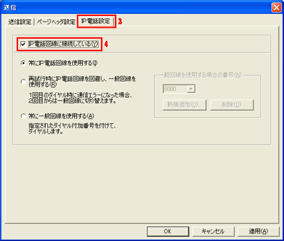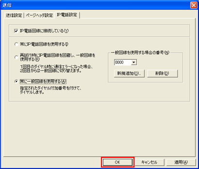 [IP電話回線に接続している]にチェックを入れます。 |