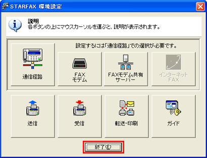 | 8. | [環境設定]の[終了]をクリックします。 |