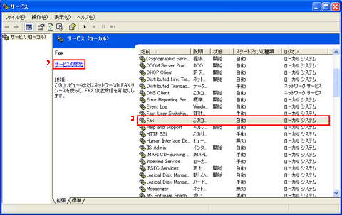 | STARFAX2005体験版セットアップするときに止めた、WindowsXP標準FAXを使うには、次のように設定します。 ※WindowsXP標準FAXを稼働させると、STARFAX2005は正常に動作しなくなりますのでご注意下さい。 |