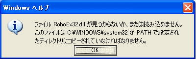 ヘルプを開こうとすると「ファイルRobEx32.dllが見つからないか、または読み込めません・・・」というエラー画面が表示される