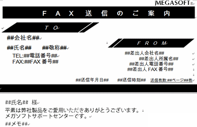 Microsoft Wordで作成した書類に、STARFAXの 「差し込み文字」の文字列を入力しておくと、電話帳や短縮 パネルの送り先を差し込んだFAXが送れます。
