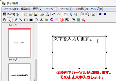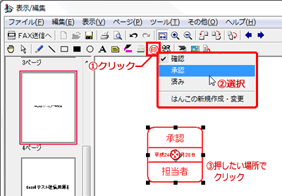 STARFAXにセットしたFAX原稿に、文字を挿入したり、ハンコを押したりなどの編集を行います。
