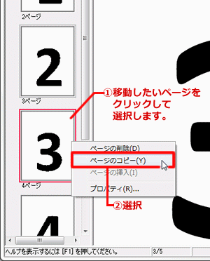 2.)選択したファイルを右クリックして、表示されたメニューから「ページのコピー」を選択します。
