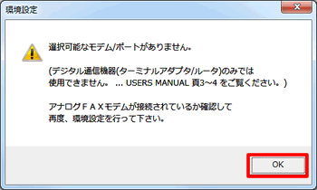 | 「環境設定で指定したFAXモデムが利用できません」と表示された |