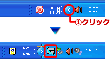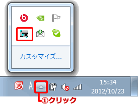 パソコンのモニターの右下、「▲」をクリックして、タスクトレイを開きます。
