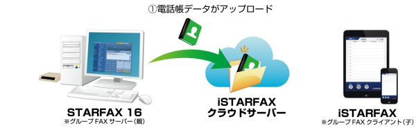 グループFAXサーバー(親)である「STARFAX 16」で使用している電話帳が、どのように「iSTARFAX」に共有されるかについて説明します。
