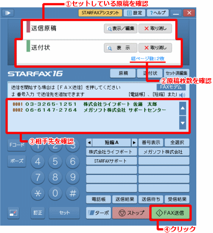 誤りがなければ、「FAX送信」ボタンをクリックします。