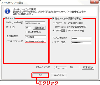 ※設定方法は、ご契約のプロバイダ、またはメールサーバー管理者様にご確認ください。