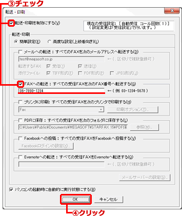 STARFAXで受信したFAXを、指定したFAX番号に送信します。