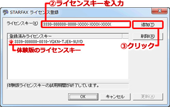 STARFAXの体験版は、ご購入のライセンスキーを登録することで、 製品版に切り替わります。