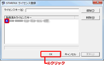STARFAXライセンス登録画面の