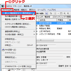 ※電話帳は、STARFAXのデータフォルダに保存されます。