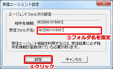 フォルダ名を指定して「設定」ボタンをクリックします。