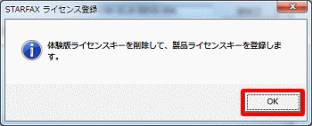 STARFAX 14の体験版は、アンインストールすることなく、購入したライセンスキーに入れ替えることで、製品版に切り替えて使用することができます。