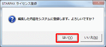 - Windows「スタート」ボタンをクリックし、「すべてのプログラム」→「STARFAX 14」→「その他の機能」→「ライセンス登録」を選択します。