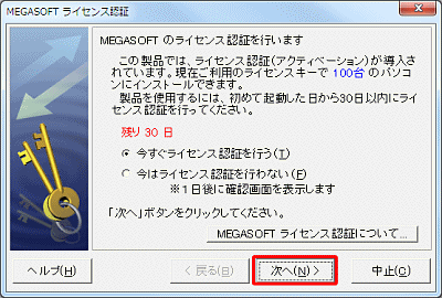 ※ライセンス認証が行えない場合は、こちらをご参照ください。