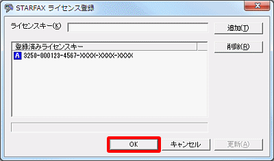 - 「2.」で入力した内容が、「登録済みライセンスキー」に表示されます。