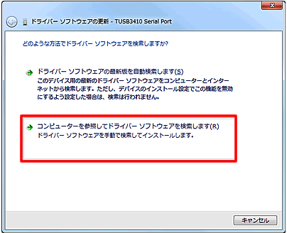 - 「ドライバソフトウェアの更新」画面が表示されます。