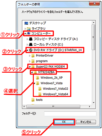 - 「フォルダーの参照」画面から、ディスク内の「MT9234ZBA」フォルダを展開し、