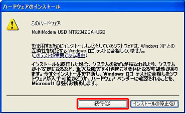 - 以下の画面が表示されましたら、「続行」または「インストール」ボタンをクリックします。