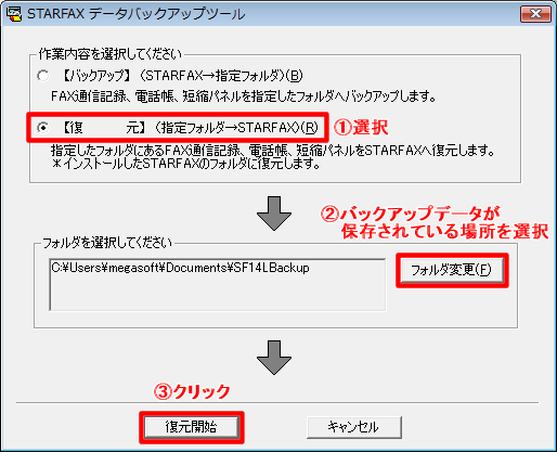 これまでの「データバックアップツール」では復元できなかった「STARFAX2005」「STARFAXパーソナル」のバックアップデータからも復元できるようになります。