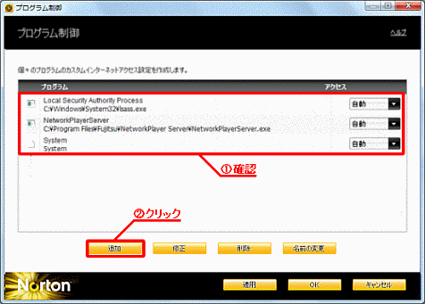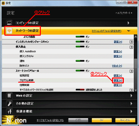 ノートンインターネットセキュリティ2011の「スマートファイアウォール」の設定方法は、