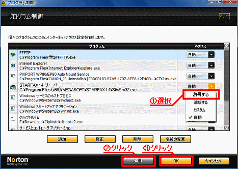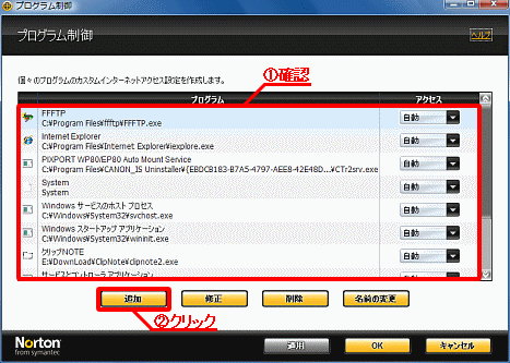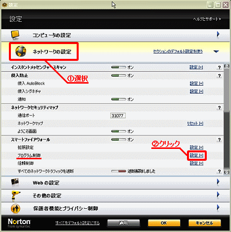 ノートンインターネットセキュリティ2010の「スマートファイアウォール」の設定方法は、
