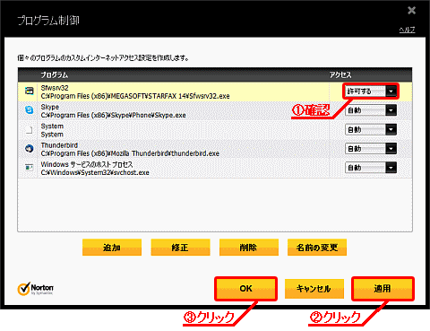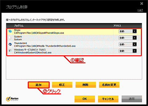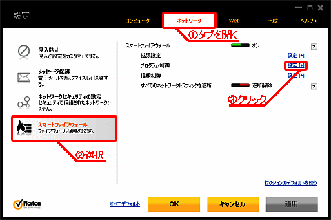 ノートンインターネットセキュリティ2012の「スマートファイアウォール」の設定方法は、