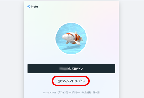 ブラウザが起動します。「別のアカウントでログイン」をクリック。