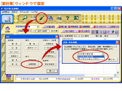 ボタンを選び、冷蔵庫チェックをしたい家計簿を選択しているかご確認ください。