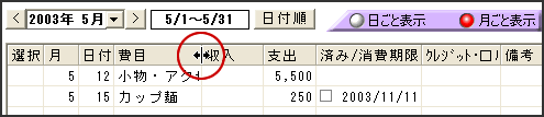 「家計簿」で入力した枠が小さすぎて文字が隠れてしまっているので、表示幅を変更したい。