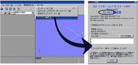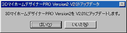 | ※3DマイホームデザイナーPRO Version2.00から2.01へのアップデートを例にご説明します。 |