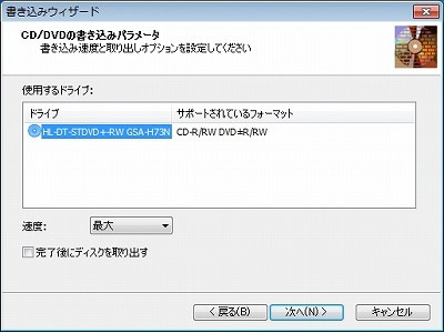 CD-R/RWの書き込み完了後、メディアをイジェクトしたい場合には、「完了後にディスクを取り出す」チェックボックスにチェックを入れてください。