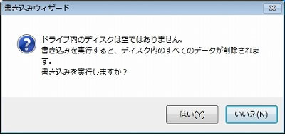 CD-RWなどの書き換え可能なメディアを使用している場合には、ディスクの内容を削除してよいか、次の確認画面が表示されますので、[はい]をクリックしてください。