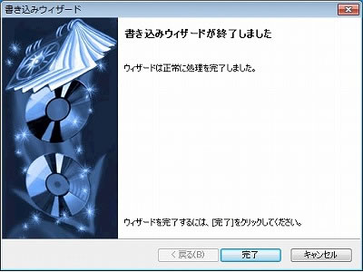 書き込みが完了すると、次の画面が表示されます。[完了]をクリックして終了します。