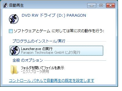 製品CDをドライブに挿入した後に、「自動再生」ダイアログが表示された場合には、「Launcher.exeの実行」を選択してください。