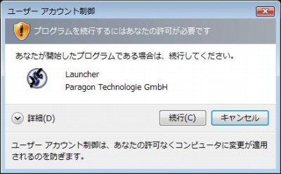 Windows Vista/7環境で「ユーザー アカウント制御」ダイアログが表示された場合には、「続行」を選択してください。