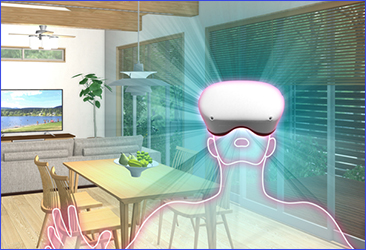 - モデルルームをご覧になられた顧客から「イメージはわかったけど、では私の家の場合はどうなるの?」モデルルームで見た大型ソファに対し「私の家に置いたらどうなるの?」という顧客本位のご提案ができるのがVRです。